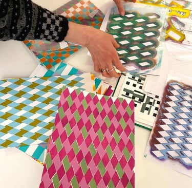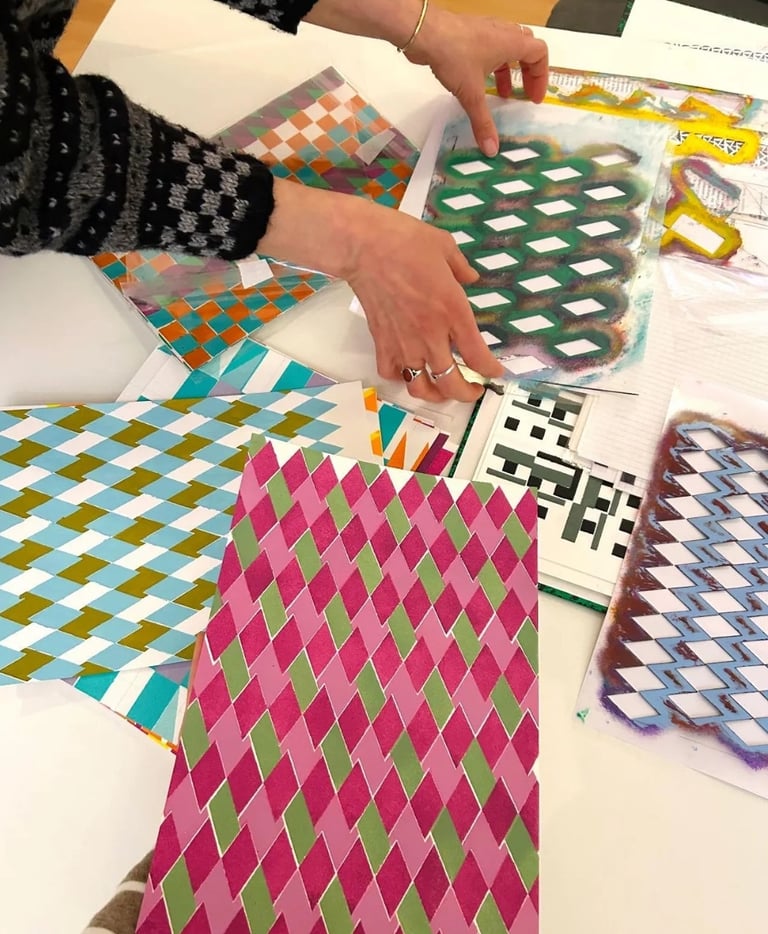 In this "Repeated Pattern Workshop", we will design a simple graphic unit and use stencils to repeat and transfer it in order to create our own custom pattern.