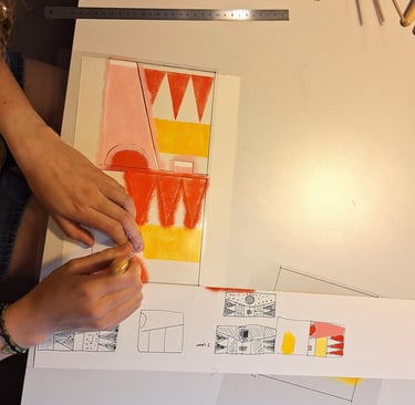 After designing our base unit and choosing the colours, we proceed to cut our stencils and begin the exciting process of printing.