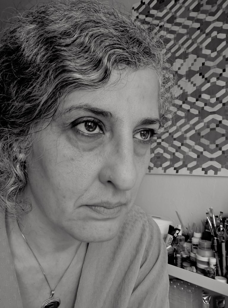 Karolyn Morovati is an autodidact visual artist who creates and develops patterns using simple geometric forms on grids of varying scales, creating intricate and